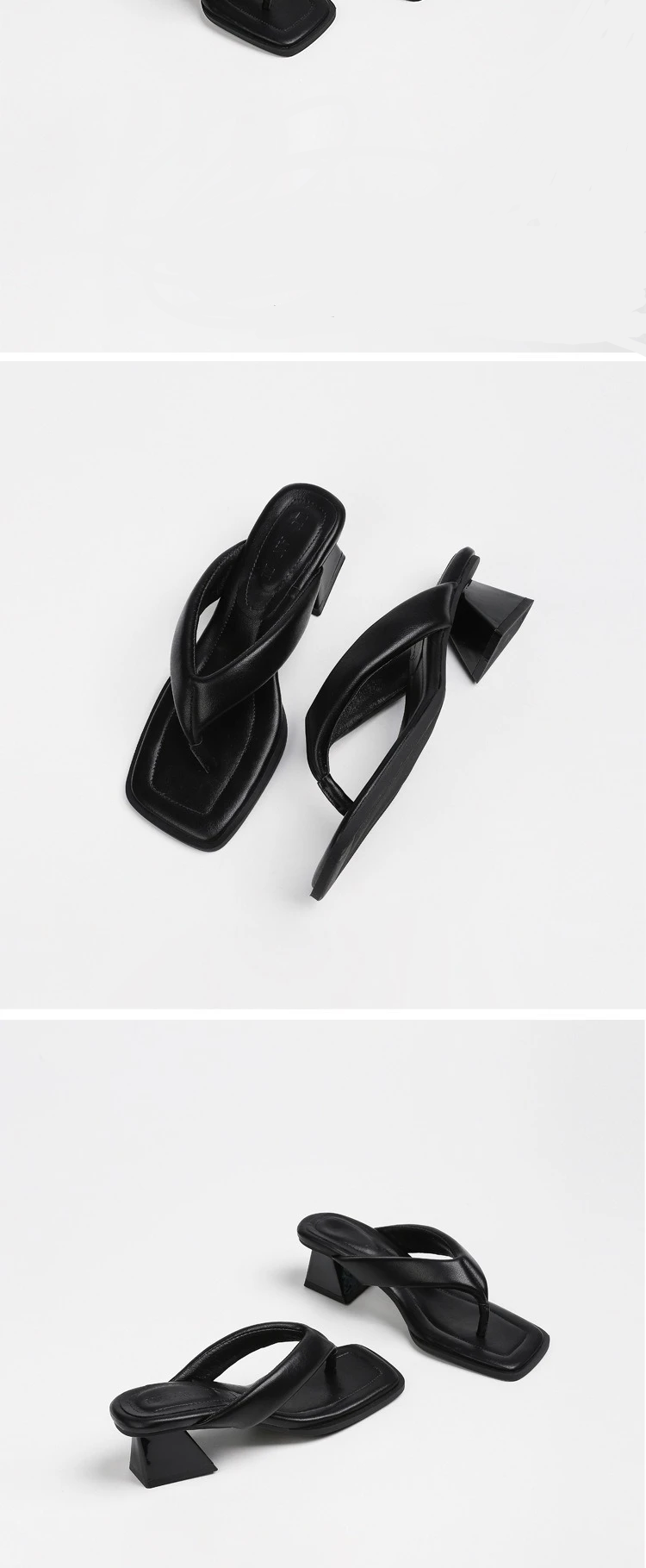 Sandália Mule Preta – Design Minimalista (Salto Geométrico)